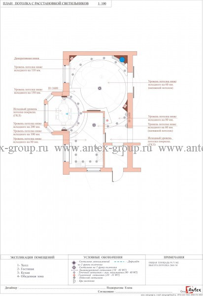 План потолка с расстановкой светильников