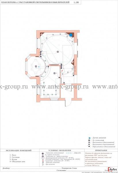 План с расстановкой светильников и выключателей